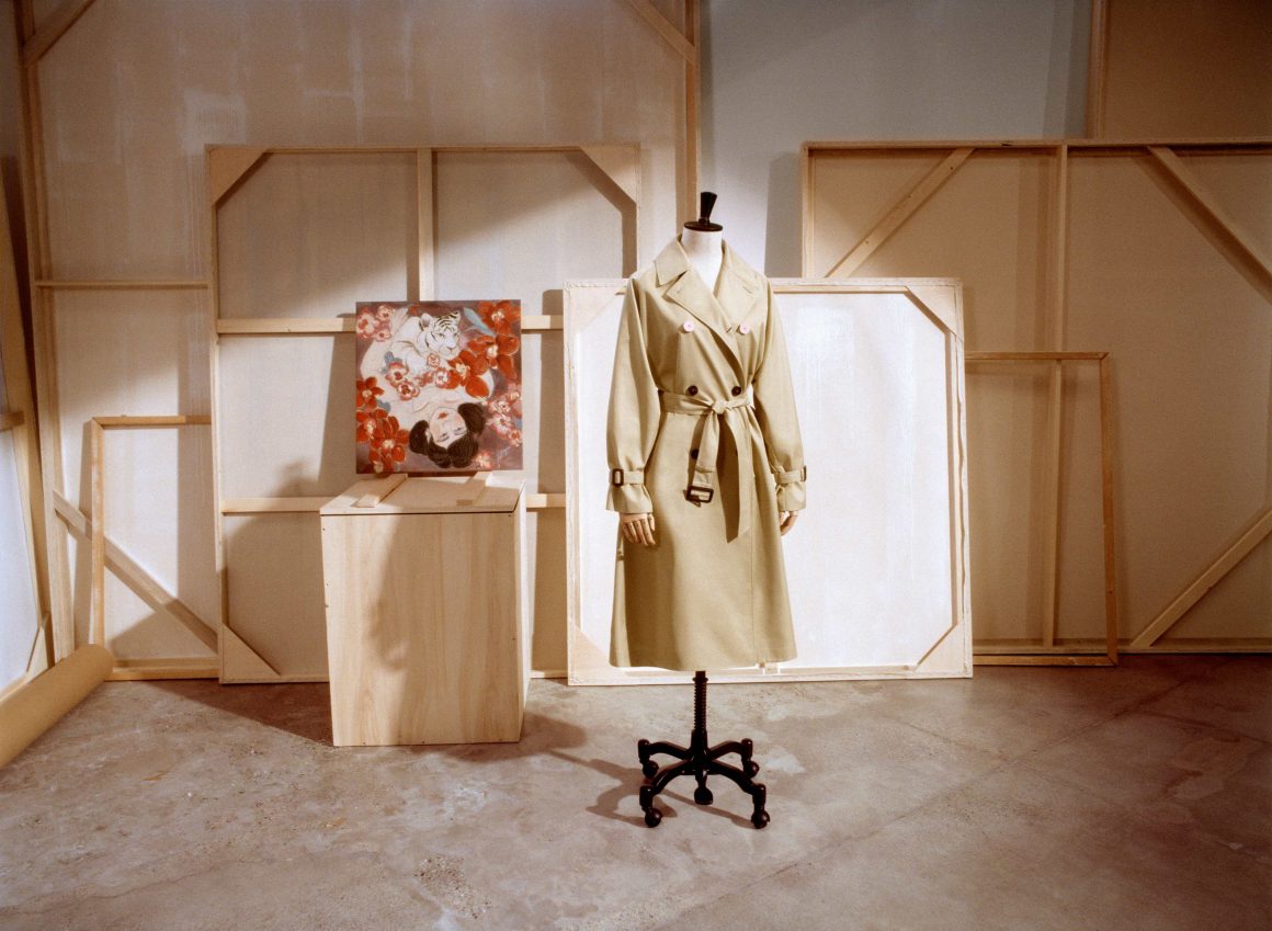 The campaign is shot by Petra Collins; a multi-talented artist and director whose photography defined the stylistic tone for much of the 2010s and 2020s. In the A Weekend with an Artist imagery, she presents a unique perspective – self-portraiture. Collins is no stranger to being in front of the cameras, and in this shoot, she poses wearing the exclusive five trench coats, also shot in still-life versions, in a setting that resembles a warehouse stacked with artworks. Filled with collector’s item desirability, each of these artistically driven statement pieces becomes a new form of art. One to wear.