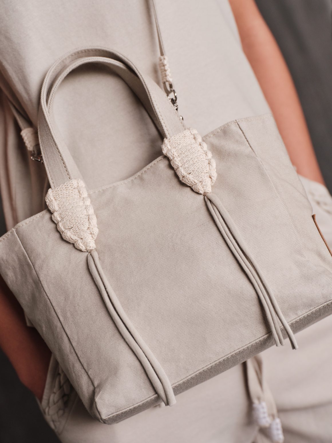 Particular emphasis is placed on Callista’s handcrafted macramé details as a design statement across Dirty Laundry’s unique 100% cotton fabrics, as well as on bags crafted from durable bull denim, available in Vintage Black, Khaki, and Sand tones.
