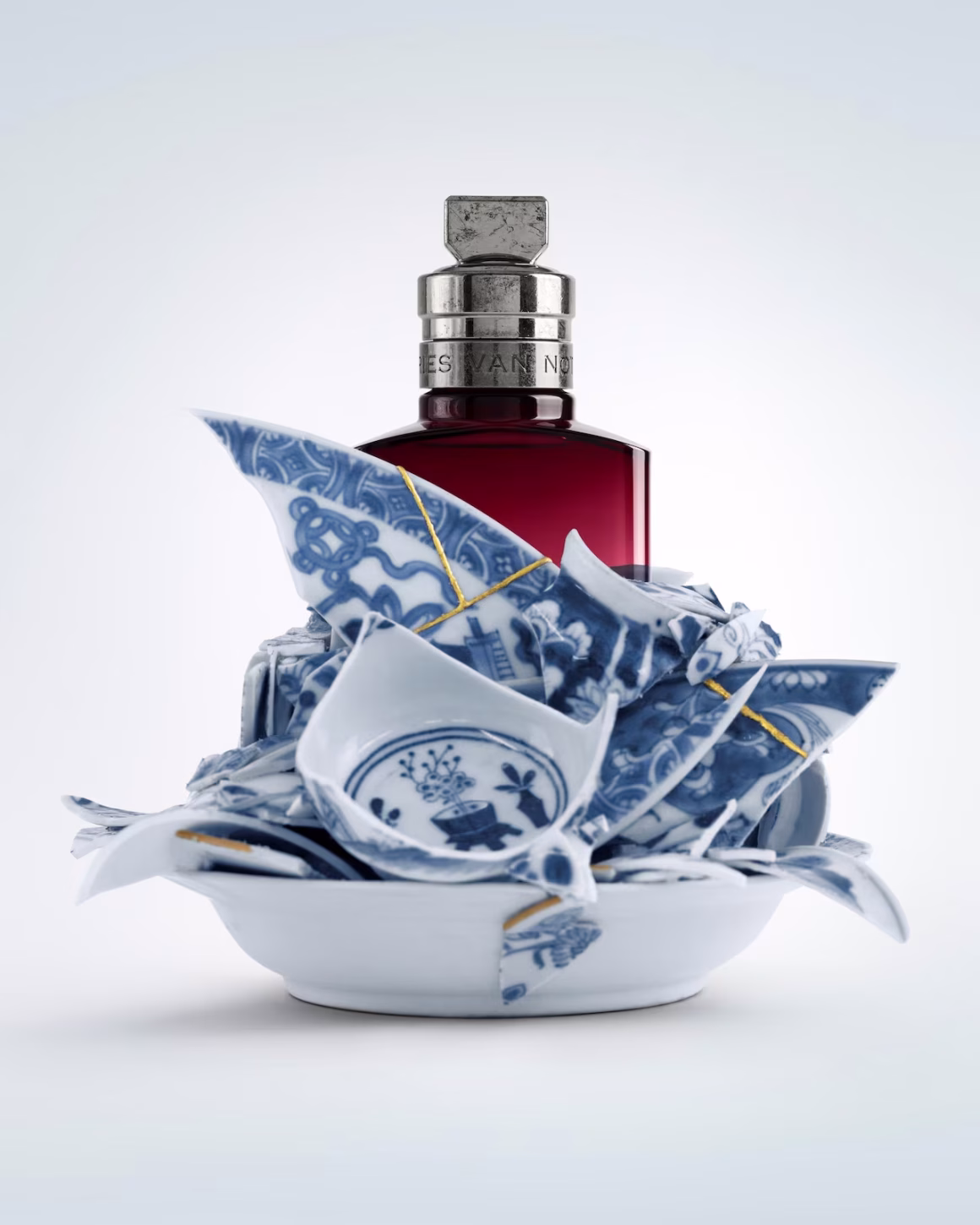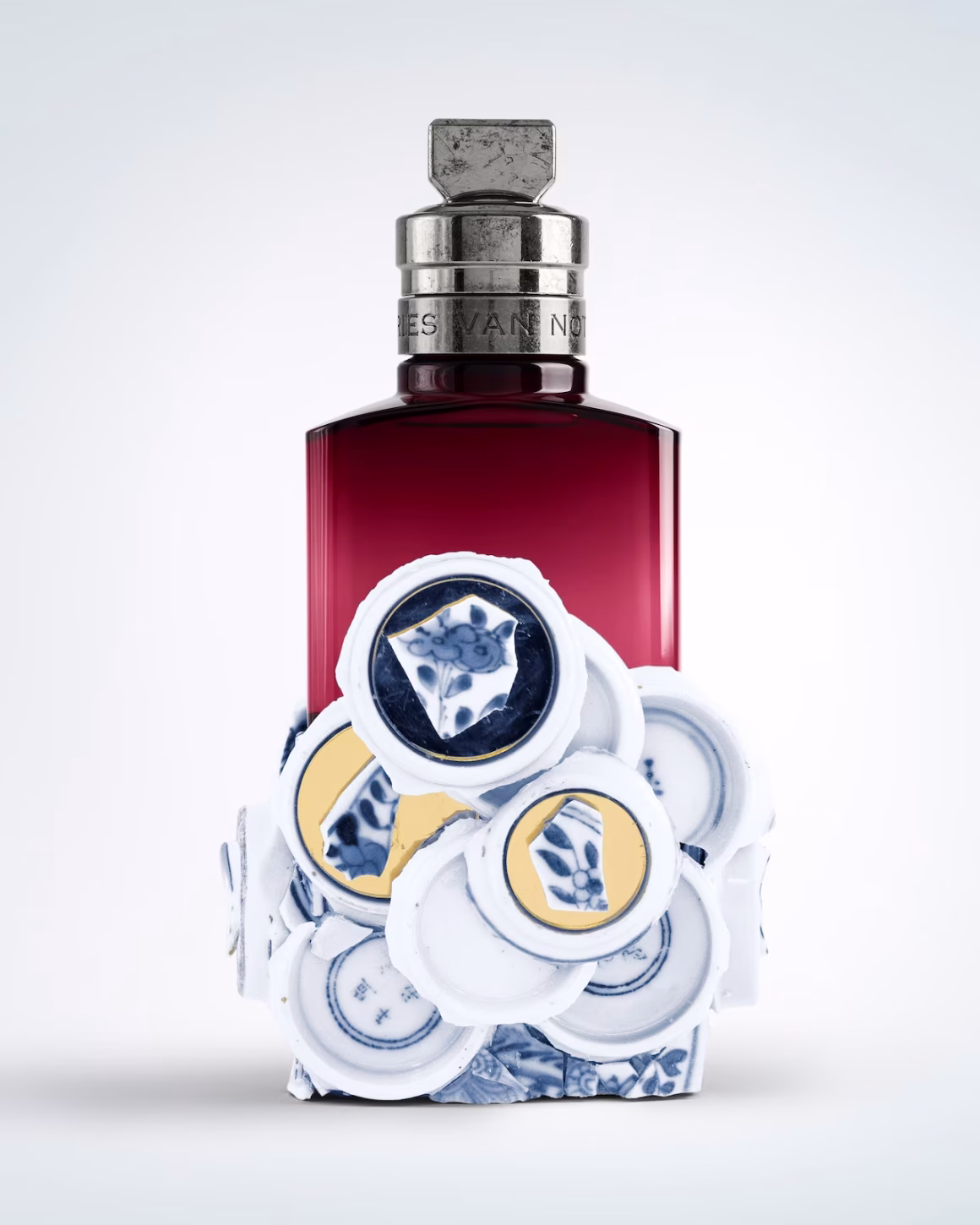 Dries Van Noten is celebrating its beloved cult fragrance Soie Malaquais by turning it into a series of collectable sculptures. The house is teaming up with Bouke De Vries – the Dutch artist known for transforming ceramic fragments into ornate, baroque reconstructions – to create five one-of-a-kind “masterpiece bottles”.