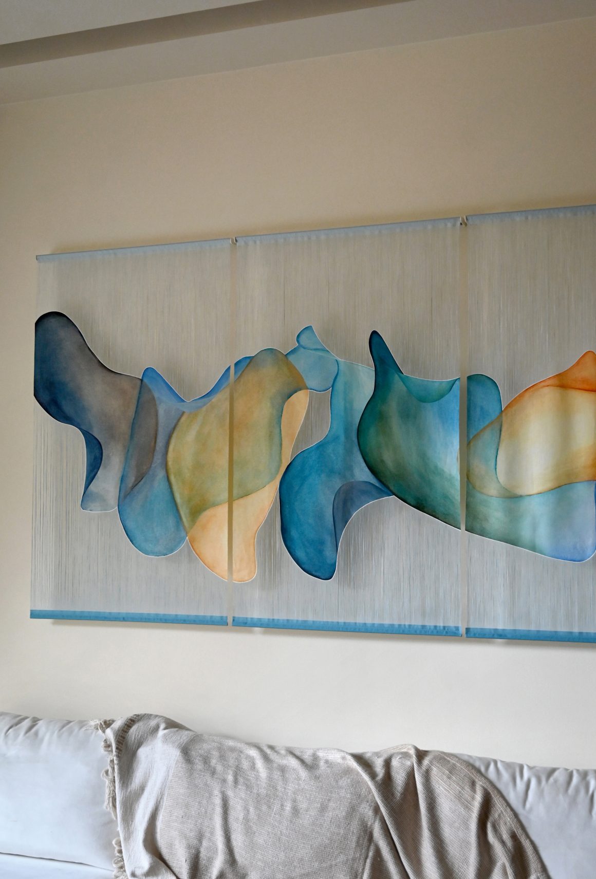Κάτι που μου αρέσει πολύ να κάνω είναι να κρατάω σχεδόν όλα τα πειράματα μου και τα υλικά που μου περισσεύουν, με σκοπό να τα επανεξετάσω αργότερα. Αυτό βασίζεται σε μια συμβουλή καθηγήτριας μου στο πανεπιστήμιο, που με προέτρεψε να κοιτάζω τις παλιές μου τεχνικές και να τις ξαναπροσεγγίζω με νέα ματιά, γιατί παραμένουν δικές μου και απλώς τις φέρνεις στο τώρα. Αυτό με ξεμπλόκαρε πολύ σε στιγμές που ένιωθα ότι δεν είχα ιδέες, γιατί εν τέλει οι ιδέες είναι παντού γύρω μου στο στούντιο. Κρατάω ακόμα και πράγματα από τα ενδιάμεσα στάδια των τεχνικών μου, κλωστές που έχω τραβήξει, χαρτιά με μελάνι που έχω ήδη χρησιμοποιήσει, γιατί πιστεύω ότι μπορεί να γίνουν το έναυσμα για κάτι καινούριο.