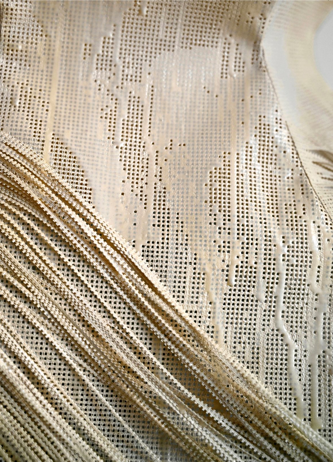 Οι σπουδές μου ήταν πάνω στο σχέδιο υφάσματος με ειδίκευση στο κέντημα, αλλά αρκετά γρήγορα συνειδητοποίησα ότι αυτό δεν ήταν το μονοπάτι που μου ταίριαζε. Άρχισα έτσι να προσεγγίζω το ύφασμα διαφορετικά, να πειραματίζομαι, να βλέπω πού με πηγαίνει αν του δώσω ελευθερία. Εκεί ανακάλυψα πόσο μεγάλο εύρος εφαρμογών έχει σαν υλικό και πόσες μη συμβατικές τεχνικές μπορούν να ενσωματωθούν σε αυτό.