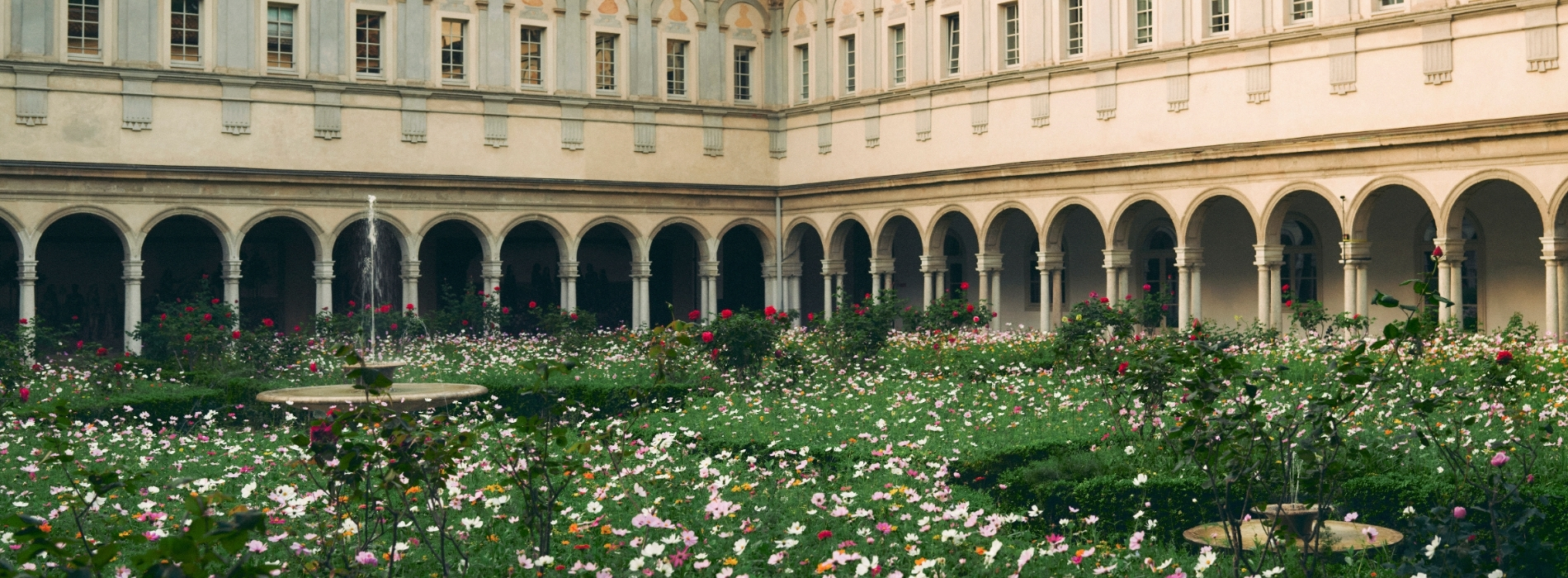 Στο μεγάλο κλειστό αίθριο, η φυτική εγκατάσταση περιλαμβάνει ειδικά καλλιεργημένα εποχιακά άνθη εμπνευσμένα από το μοτίβο Flora, ενισχύοντας τη θεματική της μνήμης και της επανεφεύρεσης. Στο μικρό αίθριο, αυτόματα μηχανήματα διαθέτουν κονσερβοποιημένα ποτά που δημιουργήθηκαν από το Gucci Giardino, το café και cocktail bar του οίκου στην Piazza della Signoria στη Φλωρεντία.