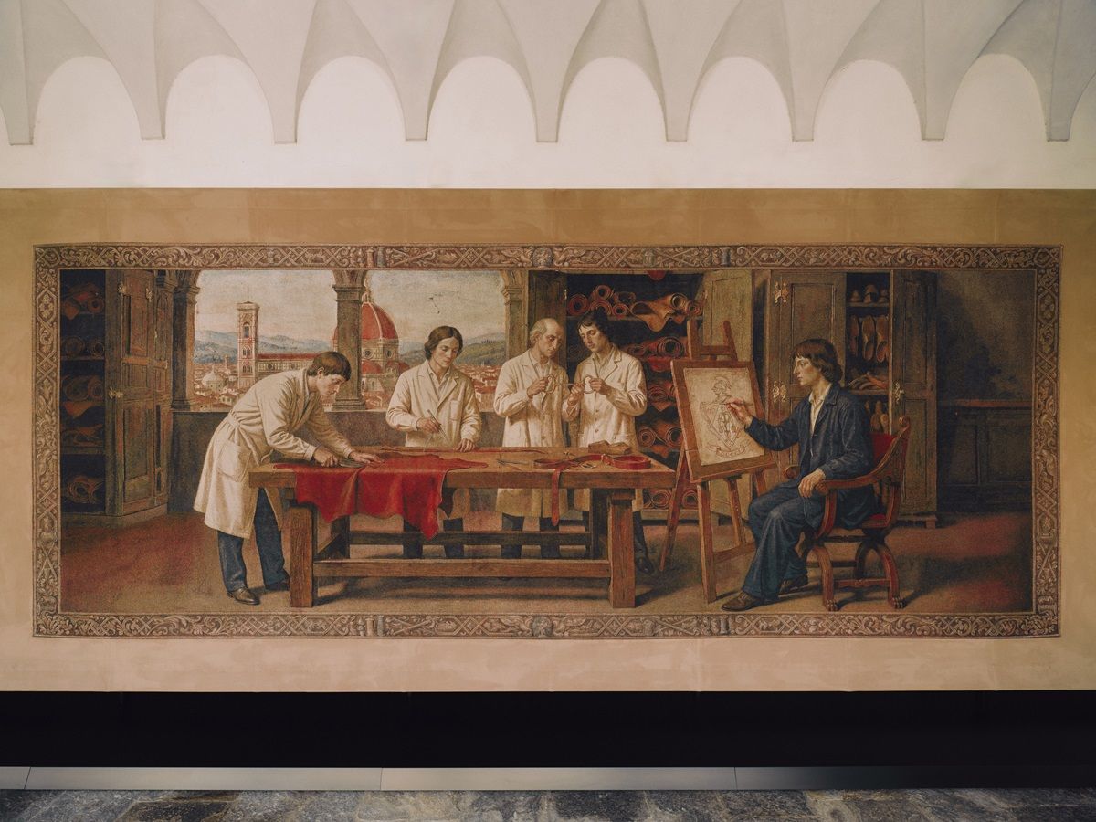 Κάθε έργο ερμηνεύει μια κομβική στιγμή της πορείας του οίκου Gucci: από τα πρώτα χρόνια του Guccio Gucci στο Savoy του Λονδίνου, έως την ίδρυση του πρώτου εργαστηρίου στη Φλωρεντία και τη διαμόρφωση της εικαστικής ταυτότητας του οίκου, που τον καθιέρωσε ως διεθνές σύμβολο πολυτέλειας.