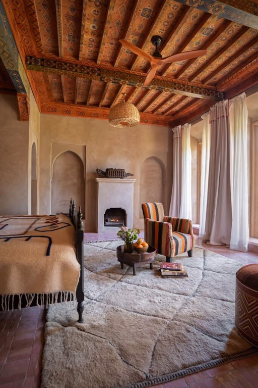 Παρά το γεγονός ότι τα 13 δωμάτια λειτουργούν με ακρίβεια ως μικρό πολυτελές ξενοδοχείο, υπάρχει επίσης η αίσθηση ότι σε καλωσορίζουν σε ένα σπίτι. Αυτό φέρνει μαζί του μια χαλαρότητα στον χρόνο, μια «απορρύθμιση», που ίσως είναι η απόλυτη πολυτέλεια. Αυτή η φιλοσοφία αντανακλάται πιο έντονα στον σχεδιασμό των κοινόχρηστων χώρων, όπου δεν υπάρχουν φράγματα ανάμεσα στον χώρο εργασίας, το lounge και την κουζίνα – το Jnane Rumi είναι ανοιχτός χώρος σε κάθε επίπεδο.