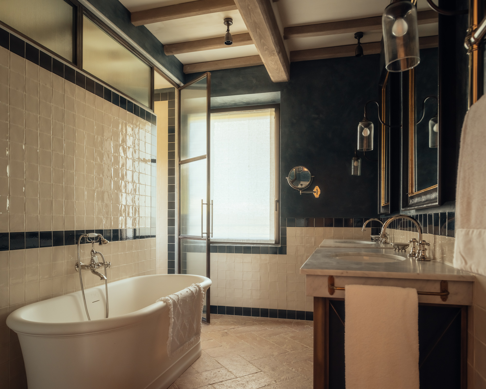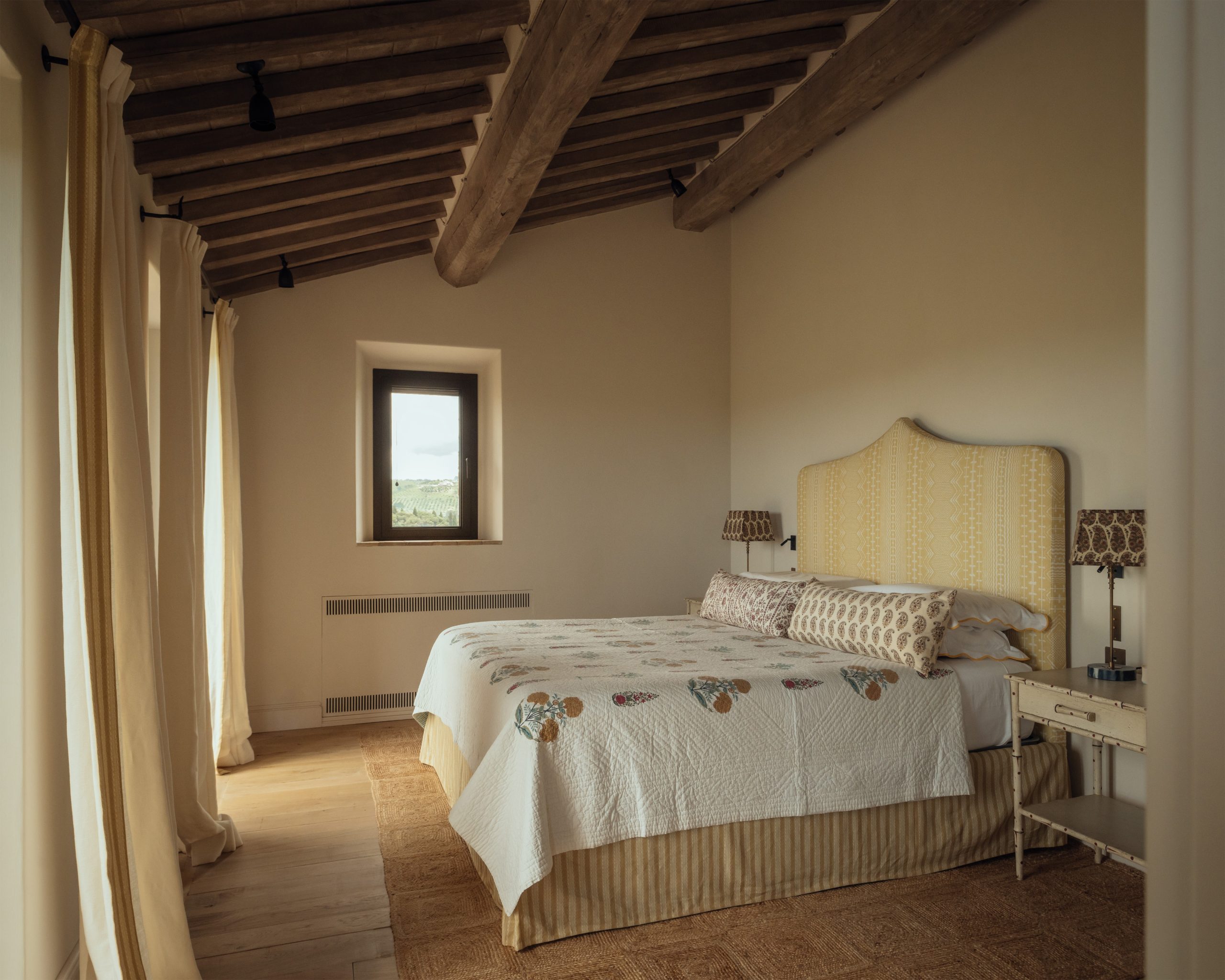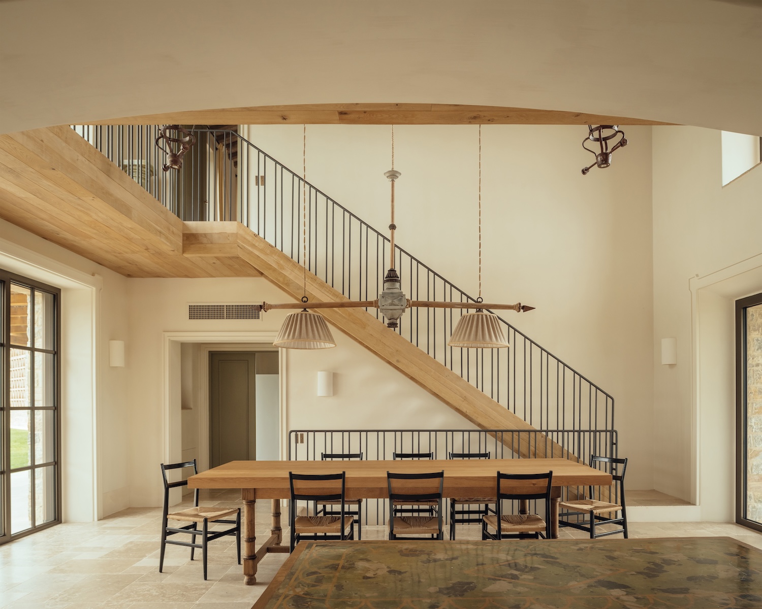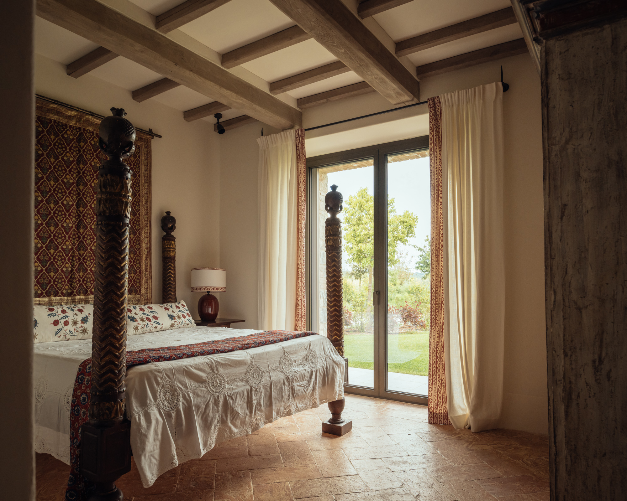 Οι εσωτερικοί χώροι αναπτύχθηκαν αρχικά από τον Tommaso Ziffer σε συνεργασία με το Studio GAA Architects. Αργότερα, ένα ισπανικό στούντιο εσωτερικής διακόσμησης ανέλαβε τη λεπτομερή διαμόρφωση των εσωτερικών χώρων και της διακοσμητικής κλίμακας. Αντικέ έπιπλα συνδυάζονται με φρεσκοβαμμένες πόρτες και ταβάνια, σε συνδυασμό με τις ανοιχτές θέες προς το τοπίο. Αυτά τα επίπεδα στοιχείων εμπλουτίζουν τους χώρους χωρίς να υπερκαλύπτουν τη διακριτική αρχιτεκτονική, επιτρέποντας στο φως, στις αναλογίες και στο περιβάλλον να παραμένουν στο επίκεντρο.