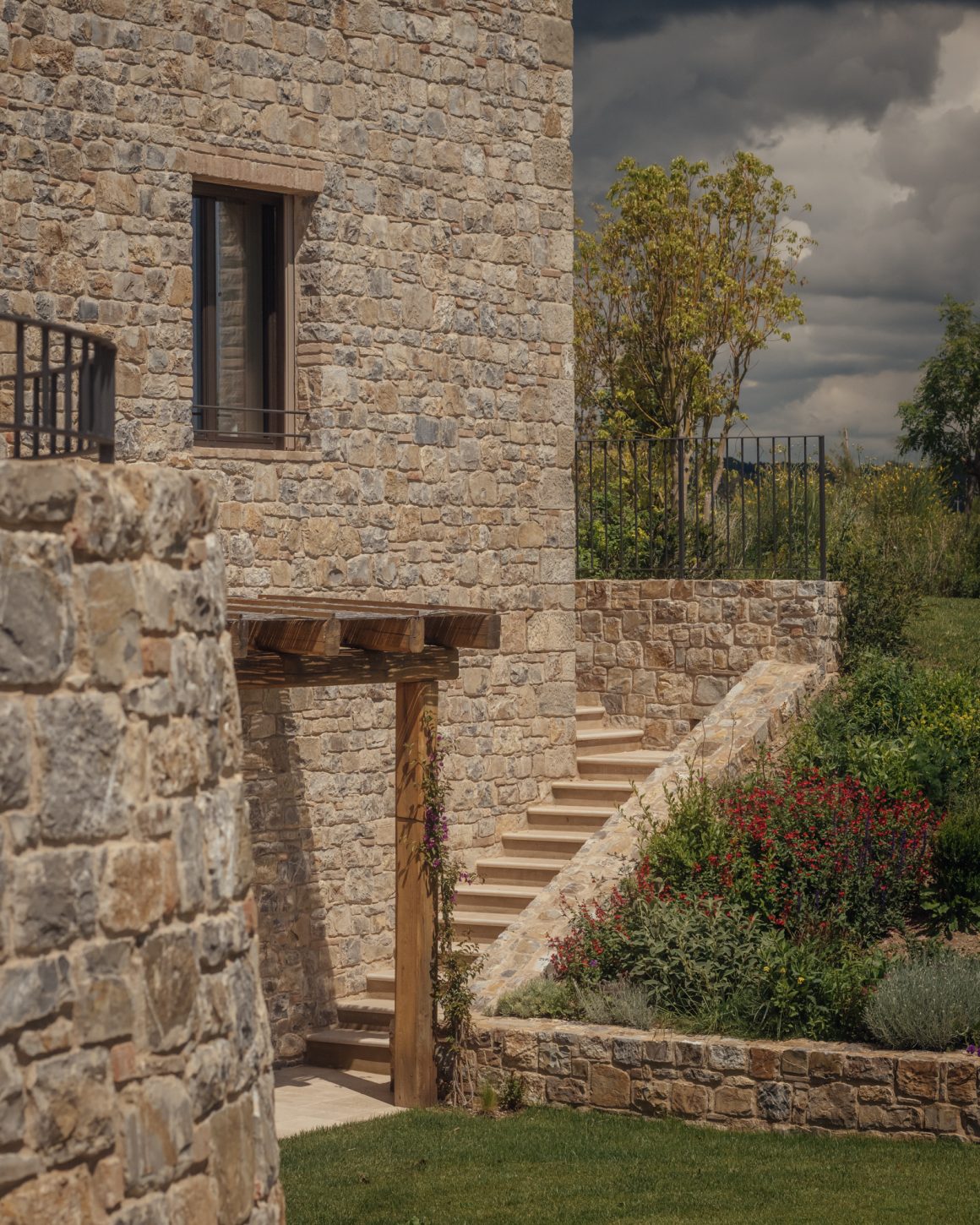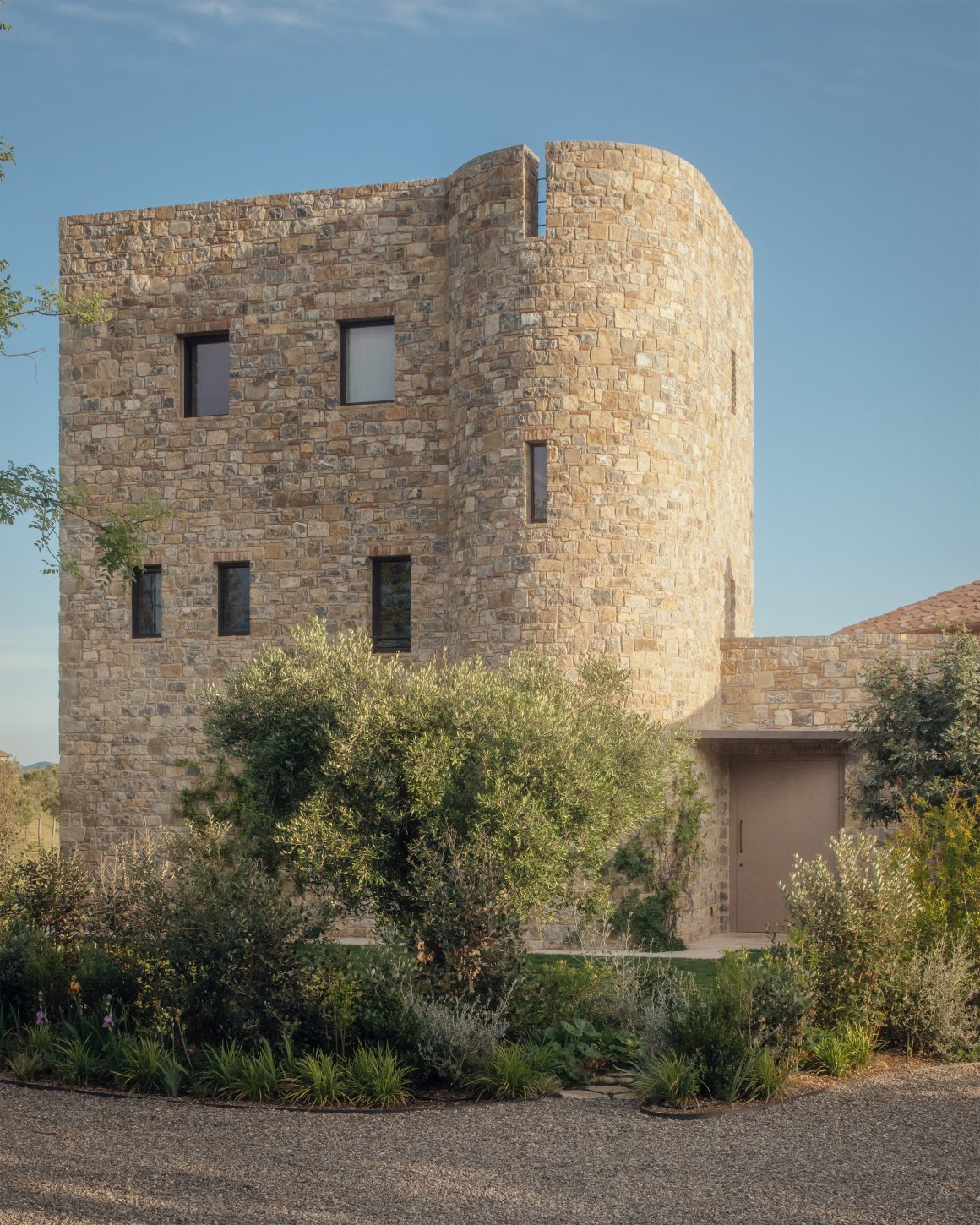 Ο Πύργος αποτελεί το πιο ορατό στοιχείο της έκτασης, με τις ψηλές και κομψές αναλογίες του να τον ξεχωρίζουν από τις χαμηλότερες, πιο οριζόντιες μορφές γύρω του. Αναφερόμενος στους ιστορικούς πύργους που βρίσκονται διάσπαρτοι στην κεντρική Ιταλία, το κτίριο λειτουργεί ως ορόσημο στο τοπίο χωρίς να το κυριαρχεί. Τα αψιδωτά ανοίγματα παραπέμπουν στην τοπική παραδοσιακή αρχιτεκτονική, ενώ οι αναλογίες των παραθύρων ισορροπούν την ιστορική αναφορά με τις ανάγκες της σύγχρονης διαβίωσης, προσφέροντας ευρείες θέες και άφθονο φυσικό φως. Καμπύλες μορφές ενσωματώνονται επίσης σε όλο το σχεδιασμό, εμπνευσμένες από την λιθοδομή των ιστορικών κτισμάτων της περιοχής, συμπεριλαμβανομένων των αμυντικών τειχών και πύργων του κοντινού Magliano.