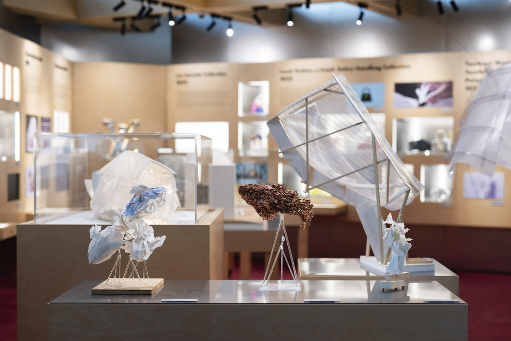 Gehry’s first project for the Maison was the striking Fondation Louis Vuitton (pictured below). Conceptualized in 2001 and inaugurated in 2014, the imaginative structure is both gallery and artwork; its composition led the Maison to solicit site-specific pieces for the Fondation, with 2018’s Open Space program. In Hong Kong, Gehry’s preliminary maquettes and sketches for the Fondation offer a closer look at his creative process.