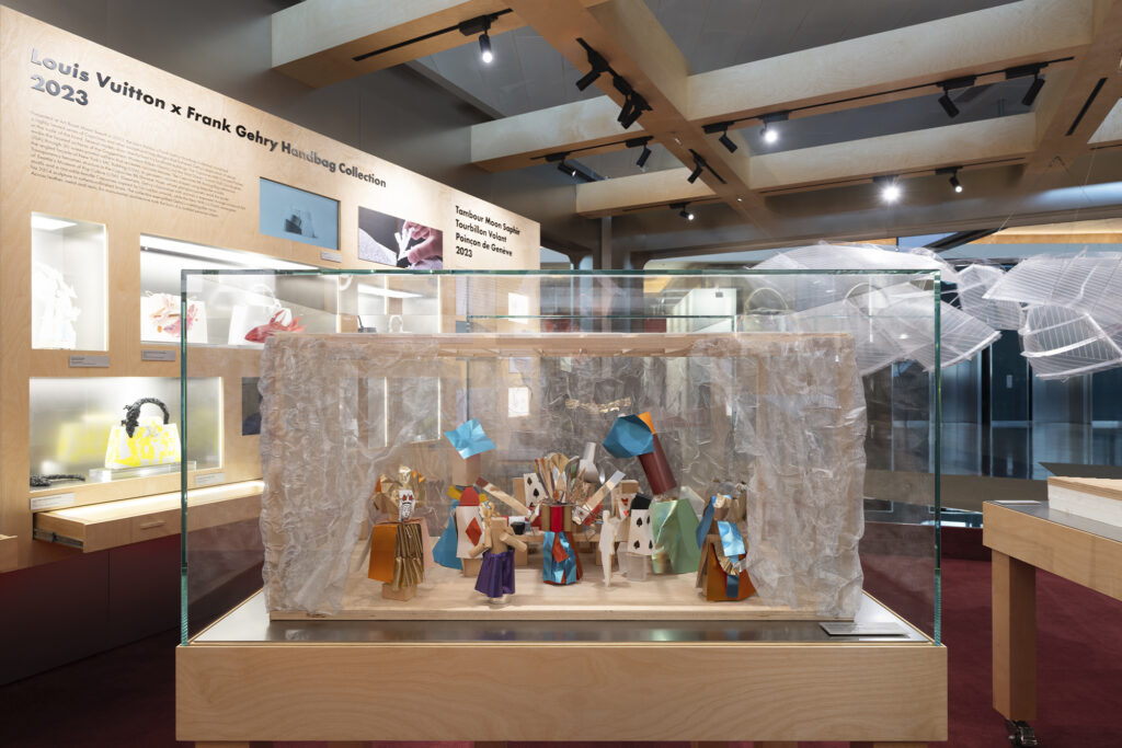 At Art Basel Hong Kong, a retrospective exhibit looks through the archives to chronicle numerous Louis Vuitton and Frank Gehry collaborations. Objects are vast and varied, yet this eclectic nature befits both Gehry and Vuitton. With handbags, fragrance stoppers, and a Tambour watch, the exhibition shows how Gehry’s legacy continues to inspire and intrigue.