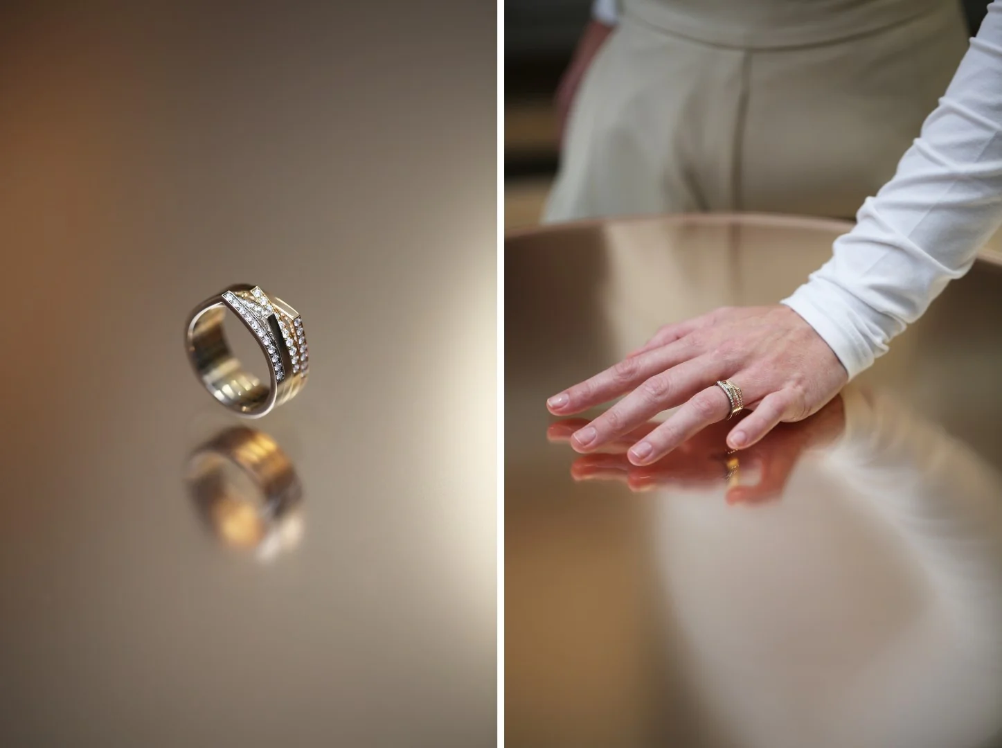 The luminous gradients of the mirrors designed by Sabine Marcelis inspired the creation of the Antifer Vendôme ring, a new four-row reinterpretation of the iconic design. Available in four shades of gold with subtle gradations, the ring celebrates color as a precious material.