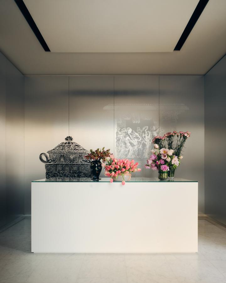 From 13 April to 30 June, the ground floor hosts Fornasetti Fiori by Fjura, a flower shop curated by Simone Gooch, featuring sculptural floral compositions in dialogue with the Atelier’s imagery. The space is thus activated as a living, ever-evolving environment.