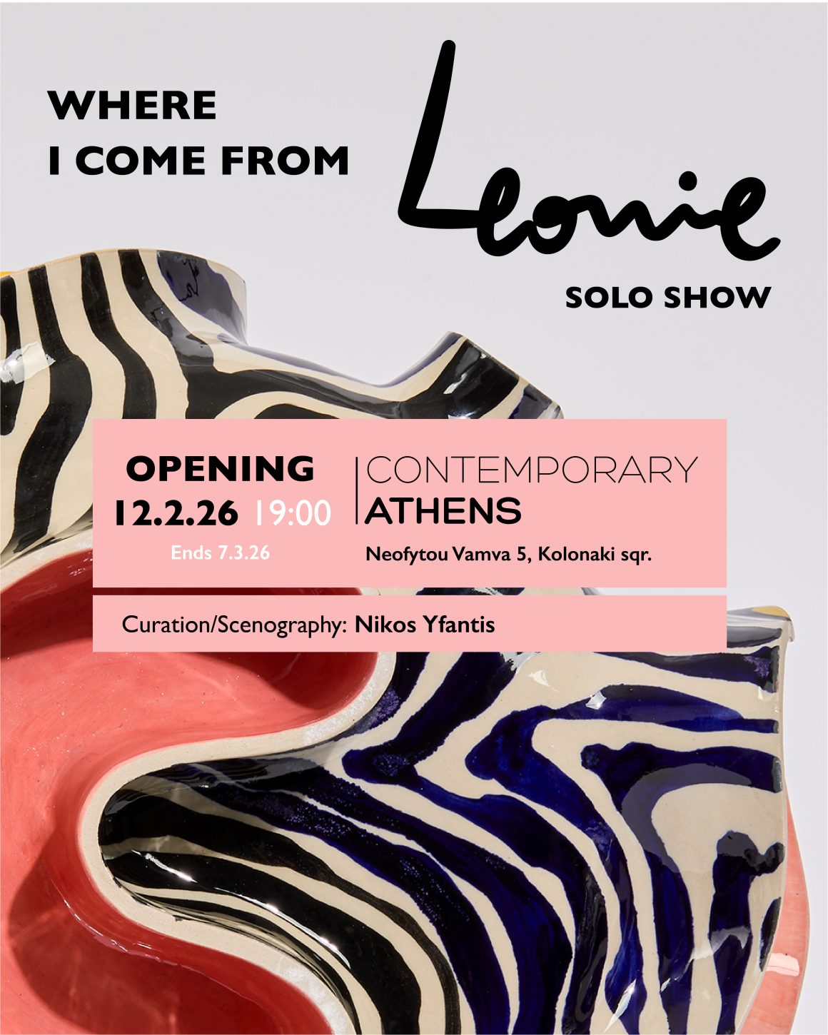 My solo exhibition titled “Where I Come From” opened on February 12, 2026, at Contemporary Gallery in Kolonaki (5 Neofytou Vamva Street) and runs until March 7. It was curated with exceptional sensitivity by Nikos Yfantis something not only I believe, but something visitors spontaneously express.